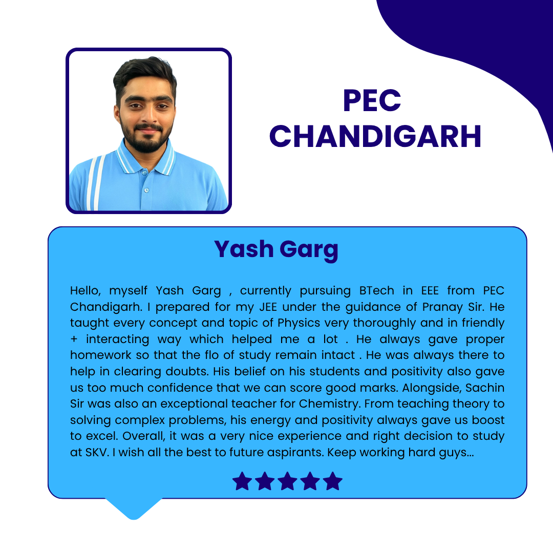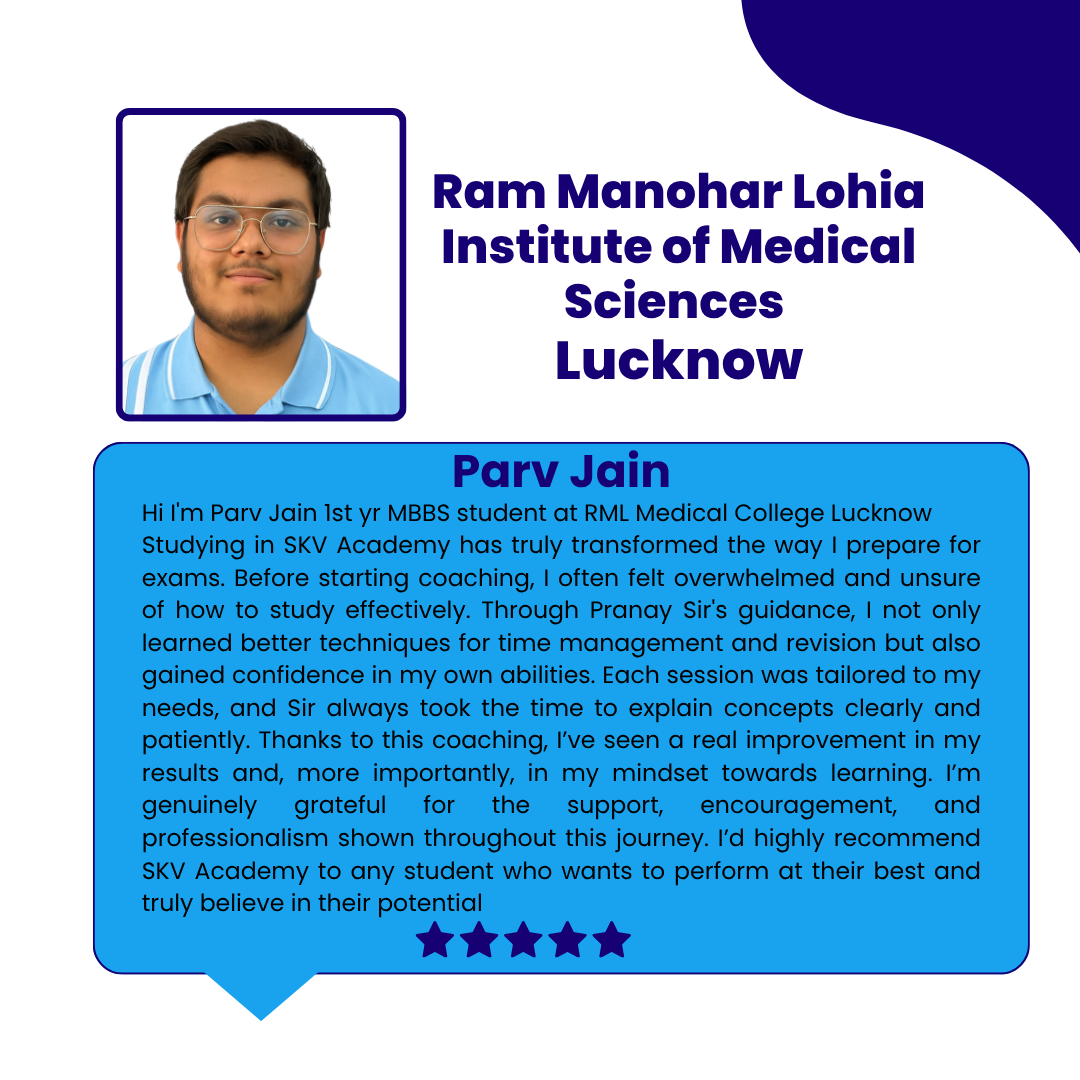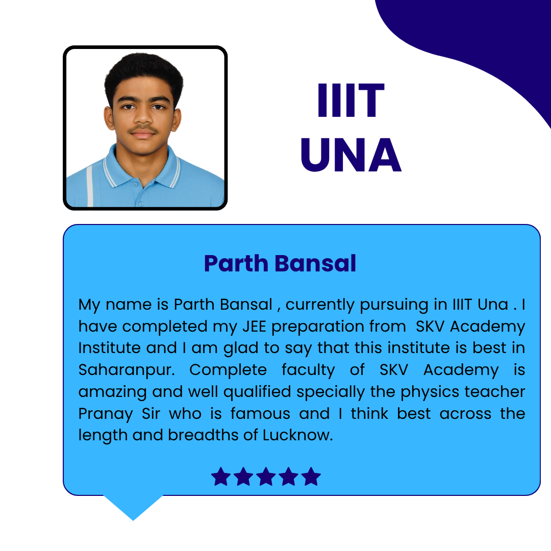 SKV Academy, established in 2023 by Er. Pranay Srivastava, a Mechanical Engineering graduate from IIT ISM Dhanbad, is a premier institute for IIT JEE coaching in Lucknow. With an excellent track record, SKV Academy has produced top ranks, including 1st in UPTU and 1st in CPMT. Many students have achieved their dreams of joining IITs and the best medical colleges in India through the dedicated guidance and expertise offered by SKV Academy.